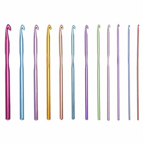 Alumínium horgolótű készlet – 12 db, különböző méretekben, színes változatban