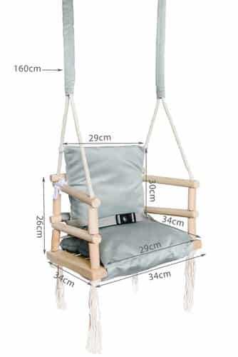 Fából készült és funkcionális – teljesen biztonságos a gyermek számára, a szélei lekerekítettek, és az egész pontosan polírozott. Lehetőség van a hinta anyagrészeinek eltávolítására, így könnyedén gondoskodhat gyermeke higiéniájáról és egészségéről.