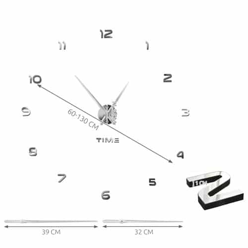 Csináld magad óra, melyet elképzelésed szerint ragaszthatsz a falra. Gyönyörű és nagyon modern megjelenésű, tükör fényű anyagból készült. Az egyes számok rögzítése a mellékelt öntapadó szalaggal történik. Az óra bármilyen színű falhoz jól passzol. Az óra 60 és 130 cm átmérővel néz ki a legjobban, de bármilyen tetszőleges átmérővel felragasztható. Illetve a számokat tetszés szerint elrendezheted – klasszikusan körbe, vagy elforgatva szabálytalan kompozíciót hozhatsz létre – minden csak rajtad múlik!