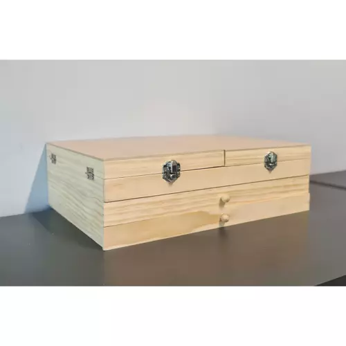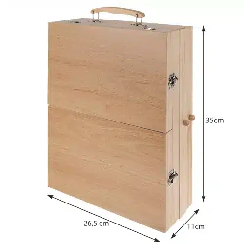 - Praktikus bőrönd 2 fiókkal – a készlet praktikus fa bőröndöt tartalmaz, mely zárral és fogantyúval van ellátva. Ennek köszönhetően a bőrönd tartalmának szállítása kényelmes és nagyon egyszerű.