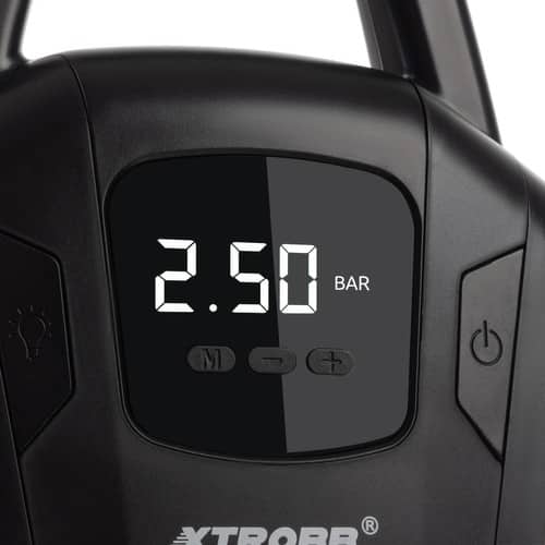 JÓL ÁTLÁTHATÓ LCD KIJELZŐ – az autókompresszor LCD kijelzővel rendelkezik. A kijelzőről leolvashatja a nyomást (2 egységben: PSI és BAR), amely lehetővé teszi a nyomás figyelemmel kísérését az abroncsokban, és beállíthatja a gumiabroncsokhoz megfelelő maximális magasságot. Ez lehetővé teszi a pontos pumpálást.