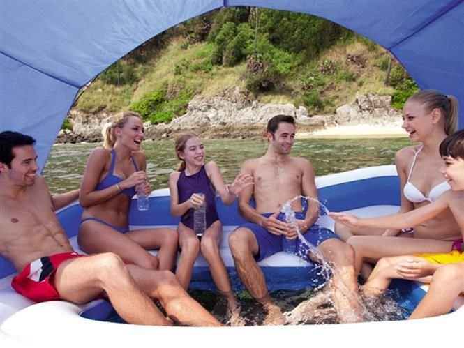 Ez a felfújható sziget tökéletes választás azok számára, akik pihenésre és szórakozásra vágynak a vízparton vagy a medencében.