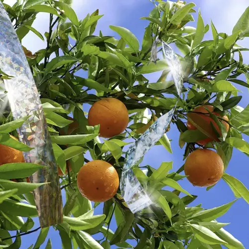 Előzze meg a termés elpusztítását azzal, hogy ezt az egyedi fényvisszaverő szalagot a fecskék és más madarak ellen akasztja fel gyümölcsfáira. A szalagok megbízhatóan elriasztják őket, és a termése védve lesz.
