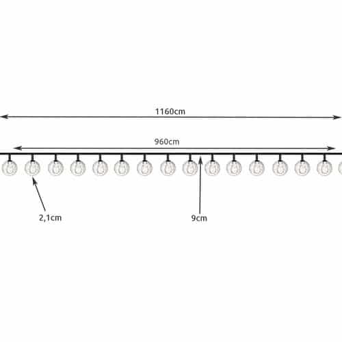 Meleg sárga fény a kényelmes hangulathoz – A füzér meleg fehér fényt bocsát ki, amely tökéletesen alkalmas egy barátságos és hangulatos világítási hatás létrehozására. A gömbök között 9 cm távolság van, biztosítva a fény egyenletes eloszlását az egész füzéren.