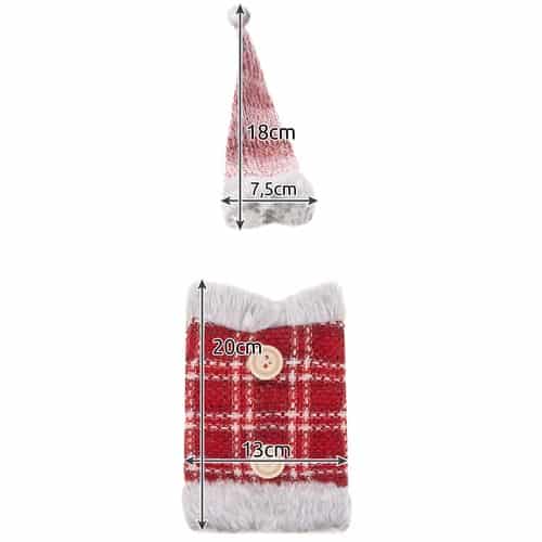 KLASSZIKUS KARÁCSONYI TÉMA – A palacktok + sapka klasszikus karácsonyi motívummal rendelkezik. A készlet tartalmaz egy öltönyt sapkával és bojttal. A további dekorációk közé tartoznak gombok és szőrme.
