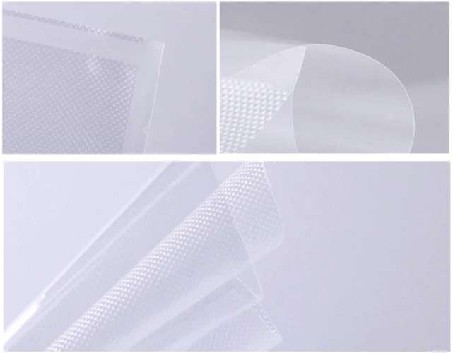 Kétoldalas használat – Ezek a vákuumzacskók tökéletesek mind otthoni, mind kereskedelmi felhasználásra. Mindkét oldaluk használható, egyik oldaluk mély dombornyomott mintával rendelkezik, míg a másik oldaluk teljesen sima és átlátszó. Ez lehetővé teszi, hogy könnyen ellenőrizhesd az élelmiszereid minőségét és frissességét.