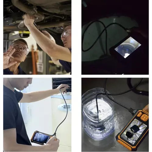 A legújabb generációs endoszkóp saját képernyővel, amelyen a kamera nézete látható! Beépített nagy és jól olvasható 4,3″ HD LCD képernyő, mely az objektívről sokkal jobb kilátást ad, a legjobb minőségben Full HD, 2 millió pixel. A termék nem igényel speciális alkalmazások telepítését. Bekapcsolás után azonnal üzemkész A készülék időt és idegeket takarít meg munka közben! Nagyon rugalmas és tartós kábellel rendelkezik. Most már nem lesz probléma a nehezen elérhető helyeken történő filmezés. A teljes kábel 5 méter hosszú. 6 beépített LED és a világítás fényerejét beállító panel garantálja a jó képet még nagyon sötét helyeken is. A fénybeállításnak köszönhetően a megvilágítást a fényképezőgéppel végzett munkakörülményekhez igazíthatja. A fényképezőgépnek akár 4 cserélhető hegye is van. Mindegyiknek más funkciója van. A kamera egy hosszú kábellel csatlakozik, ami nagyon rugalmas és tartós. Még a nagyon nehezen elérhető helyeket is könnyedén elérheti, és megnézheti, mi a hiba oka.