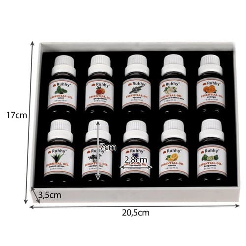 10 KÜLÖNBÖZŐ ILLAT – Az egész készletben 10 különböző illat található, mint például: eukaliptusz, narancs, menta, levendula, fenyő, citrom, vízililiom, grapefruit, citromfű, bergamott. Az összes olaj lezárva található üvegpalackokban, amelyek mindegyike 15 ml-es.