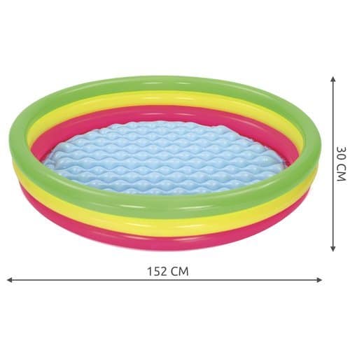 A felfújható szivárvány színű medence garantáltan örömet fog szerezni kisgyermekeknek, akik vidám és szórakoztató vízi élményeket élvezhetnek benne. A szivárványos design vonzza a gyerekek figyelmét, így a medence ideális választás a nyári hónapokban, hogy a kicsik kellemesen hűsölhessenek és játszhassanak a vízben.