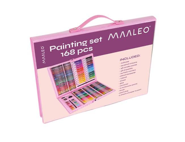 A festőkészlet táskában 168 db – rózsaszín ideális eszközkészlet, hogy felfedezd a művészetek világát. Akár kezdő, akár már tapasztalt művész vagy, ez a készlet biztosítja a szükséges alapanyagokat és eszközöket, hogy szabadon alkothass.