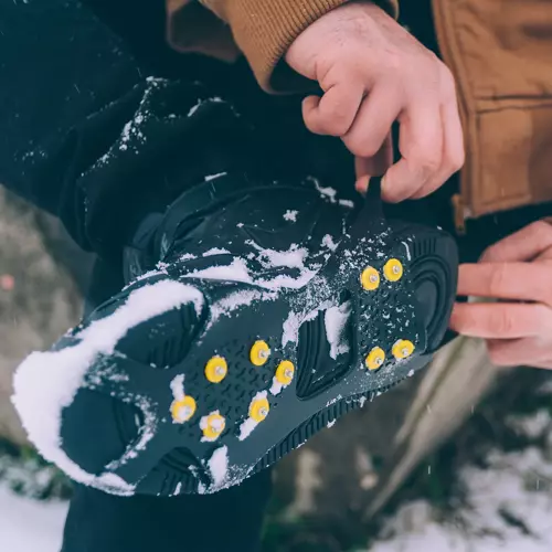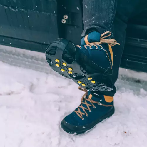Felszerelése egyszerű, a pántok segítségével rögzítse a csúszásgátlót a cipője talpára!