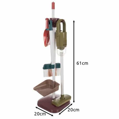 A stabil eszköztartó állvány lehetővé teszi a takarítóeszközök rendezetten történő tárolását, így a gyerekek megtanulhatják, hogyan tartsák rendben saját játékukat is. Minden elem könnyű és kifejezetten kis kezekre tervezett, így a legkisebbek számára is egyszerű a használatuk.