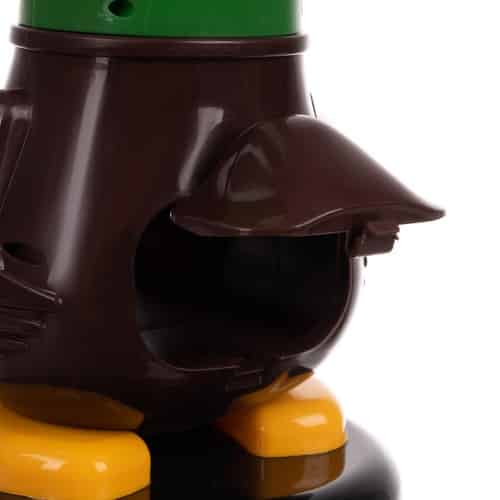 A játékfegyver elején kell a szivacsos labdatöltényeket betölteni, amiket aztán a levegő erejével lehet kilőni. A játékfegyver csomagjában 12 db szivacs töltény található, valamint egy mókás, kacsa formájú céltábla, ami számolja is a találatokat.