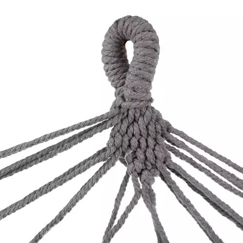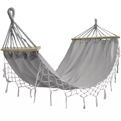 A függőágy természetes, magas minőségű anyagokból készült. A pamut és a kis mennyiségű poliészter keveréke nemcsak kellemes tapintású, hanem tartós is. A megfelelő szellőzésnek köszönhetően még a forró napokon is kényelmesen használható.