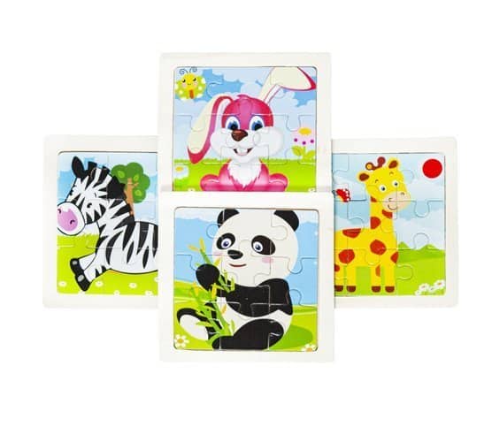 - Kisállatos Motívumok: A puzzle különféle kisállatokat ábrázol, például zebrát, pandát, nyuszit és zsiráfot, ami izgalmas kisgyermekek számára.