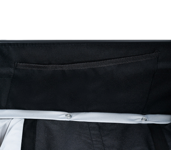 Átlátszó esővédővel, szellőző hálós ajtóval és fóliás oldalsó ablakokkal szerelve, így megvédi a gyerekeket a széltől, esőtől és rovaroktól, miközben friss levegőt és jó kilátást biztosít.