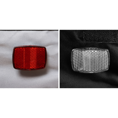 Masszív acélvázzal készült, rendelkezik rögzítőfékkel, fényvisszaverő elemekkel és egy jól látható biztonsági zászlóval. Az integrált biztonsági övek gondoskodnak róla, hogy gyermekeid mindig biztonságban legyenek.