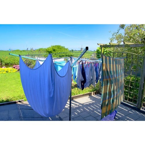 ✔ 50 méter szárítózsinór – A négykaros kialakítás összesen 48 szárítózsinórt kínál, így akár 40 kg ruhát is elhelyezhetsz rajta. A karok biztonságosan rögzíthetők összecsukott állapotban, így elkerülhető a véletlen összezáródás.