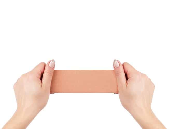 Használata: maximum 20 cm-es darabok használata javasolt, melyeket száraz, tiszta, bőrápolók és különféle krémektől mentes bőrre kell helyezni, mivel ezek a szerek ronthatják a ragasztó hatását. A ragasztószalag használata előtt ne felejtse el a mellbimbókat védő tapaszokat felhelyezni!