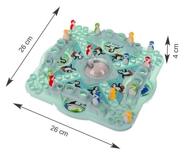 Termékünk nagyszerű ajándék lesz a társasjátékokat kedvelő gyerekeknek, legyen szó bármilyen ünnepről. A játék vidám színei, az aranyos pingvin bábuk, valamint a nem mindennapi dobókocka biztosan minden kisfiút és kislányt lenyűgöz majd.