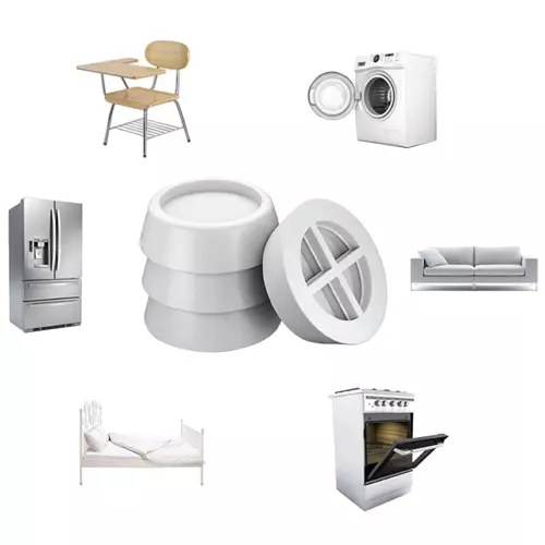 A mosógép és egyéb háztartási gépek lába alatti rezgéscsillapító betétek jelentősen csökkentik a készülékek által keltett zajt és a kellemetlen rezgéseket, amelyek mind a felhasználóknak, mind magának a berendezésnek kárt okozhatnak. Megakadályozzák az eszköz mozgását, ami megkarcolhatja a padlót. Csökkentik a zajt és védik a padlót. Az új, csúszásgátló gumi összetétel nagyobb stabilitást biztosít a berendezés számára. Mostantól kezdve elfelejti a mosógép “csínytevéseit”. Nem fogja megváltoztatni a helyét minden egyes mosásnál, és a falak és a padló “megkönnyebbül”. Ráadásul nem fog többé minden mosás után a mosógéppel küszködni.