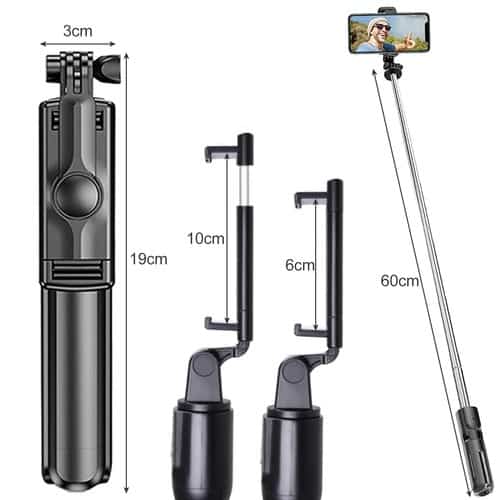 2 az 1-ben – a készlet tartalmaz egy önálló rudat, amely kinyitható állvánnyá (állványként) is, valamint egy távirányítót a fényképek készítéséhez. A módok váltása könnyű és csak néhány mozdulatot igényel. Csúsztassa a fogantyút a távirányítóra, nyissa ki a lábakat. Az önálló rúd 60 cm hosszúra nyílik, és a telefon tartója 360 fokban forog.