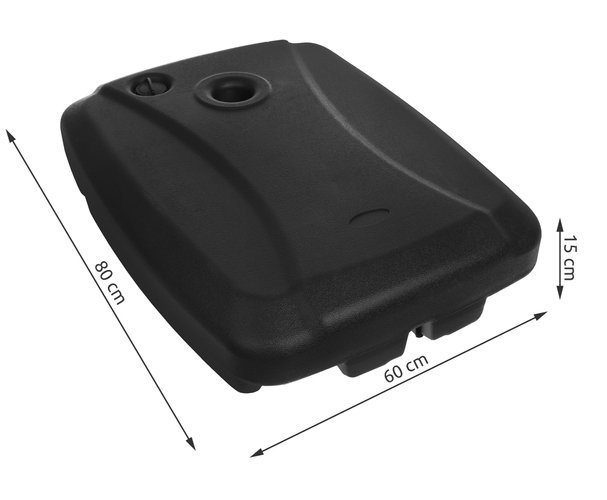 VÍZZEL VAGY HOMOKKAL – A napernyő talapzatát vízzel vagy homokkal lehet töltögetni a jobb stabilizálás érdekében, ezzel kb. 60 kg-os súlyt adva neki, így nincs kockázat, hogy a szél felkapja a napernyőt. A vízcsap is nagyon praktikus megoldás, amikor már nincs szükség a napernyőre.