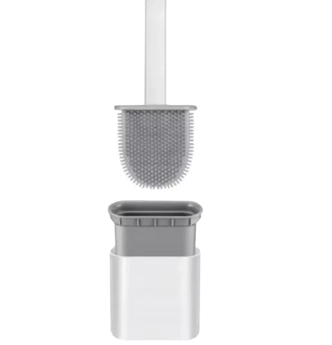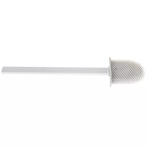 A modern, fehér és szürke színösszeállítású szilikon kefefej megbízhatóan tisztítja a WC-t, beleértve az összes ívet és sarkot. A hosszabb nyélnek köszönhetően még mélyebb és kevésbé hozzáférhető helyeket is elérhet vele.