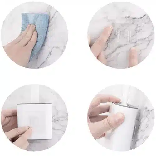 A kefe öntapadós ragasztóval rendelkezik, melynek köszönhetően a csempe fúrása nélkül is felszerelhető. Csak ragassza a falra és már kész is, de akár a padlóra helyezve is használható.