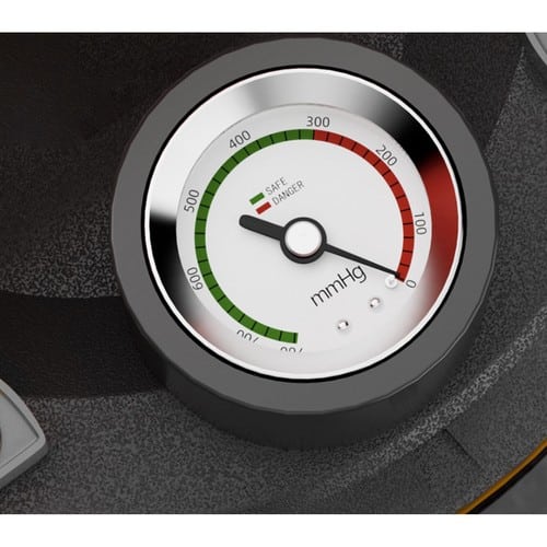 A szívócsonk nyomásmérővel van ellátva. Akár 760 mmHg-ig mutat. Amikor a tű a zöld tartományban van, a felemelési képesség a legerősebb.