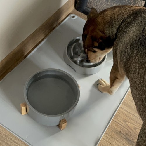 • Tágas XXL dizájn: A 60 x 45 cm-es méret két tálka elhelyezésére alkalmas, miközben kompakt marad, hogy illeszkedjen bármely etetőhelyhez.